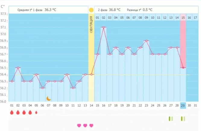 Построение графиков измерений температуры у женщины — довольно трудоемкий способ. Сложность заключается не только в регулярности, но и в связи с небольшой разницей в показателях (признаком овуляции считается диапазон в пределах 0,6°).